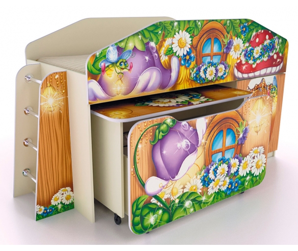 Лесная сказка - кровать чердак с выкатным ящиком и письменным столом