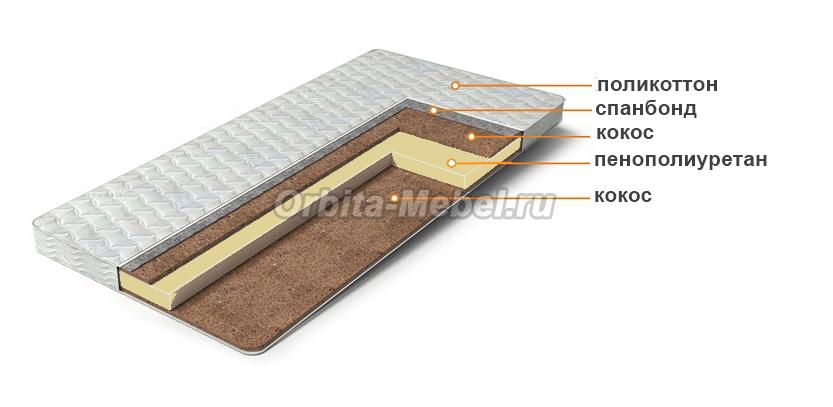 Матрац КОКОС КЛАССИК (кокос-ППУ-кокос) 150х70 высота 8 см.