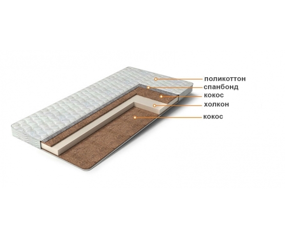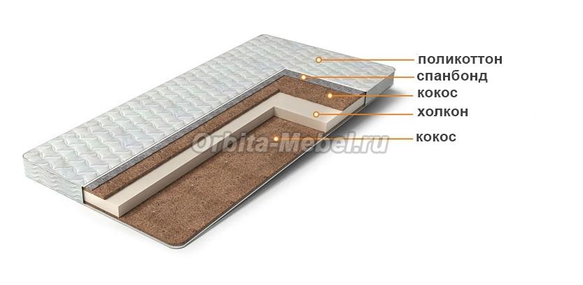 Матрас беспружинный ортопедический "КОКОС ЭЛИТ" (кокос+ХОЛКОН+кокос) 185х90; Н 8см