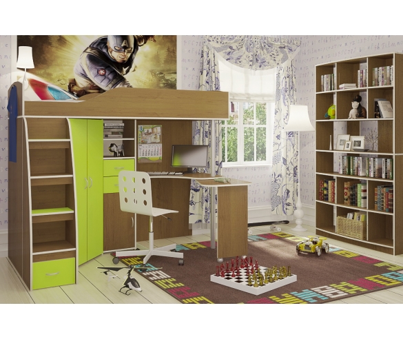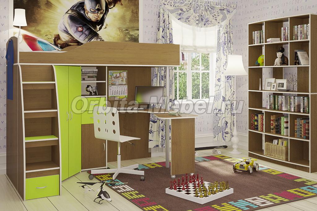 Мебель в детскую комнату Орбита-1 МЕДИУМ, (орех НГ/салатовый), спальное место 200х80