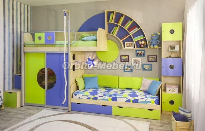 Мебель Выше Радуги - композиция 7. Спальное место 190х80 см. Лайм/Синий
