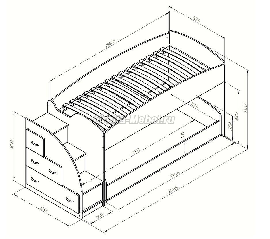 Кровать двухъярусная "Дюймовочка-4", модель 1, Схема