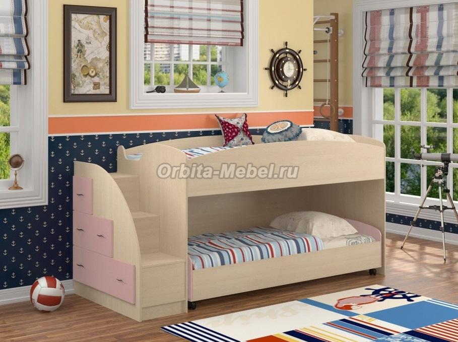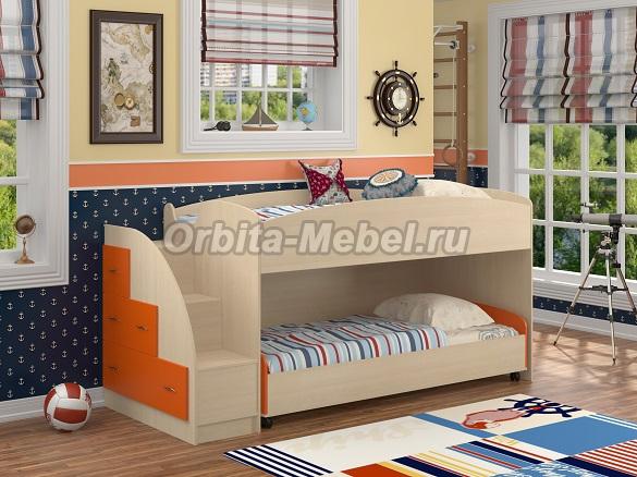 Кровать двухъярусная "Дюймовочка-4" Корпус: Дуб Молочный,Фасад: Оранжевый