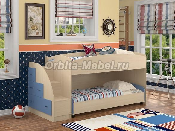 Кровать двухъярусная "Дюймовочка-4" Корпус: Дуб Молочный,Фасад: Голубой
