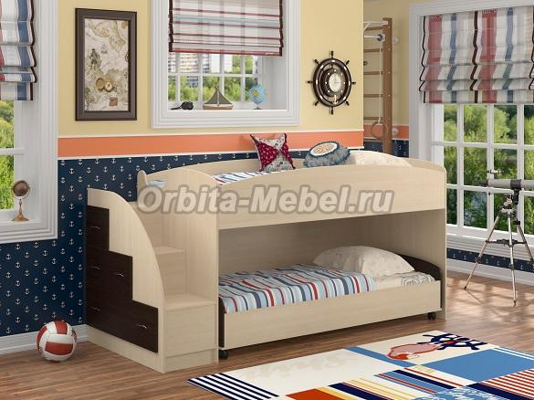 Кровать двухъярусная "Дюймовочка-4" Корпус: Дуб Молочный,Фасад: Венге