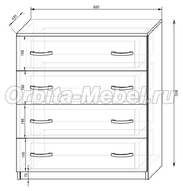 Модульная мебель Фанки Кидз - схема комода с размерами