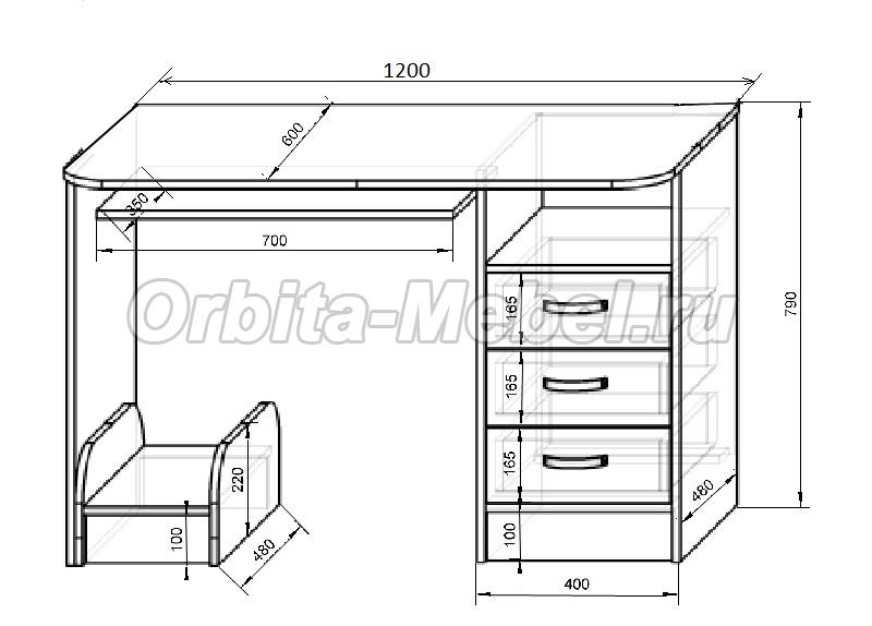 Модульная мебель Фанки Кидз - схема компьютерного стола с размерами