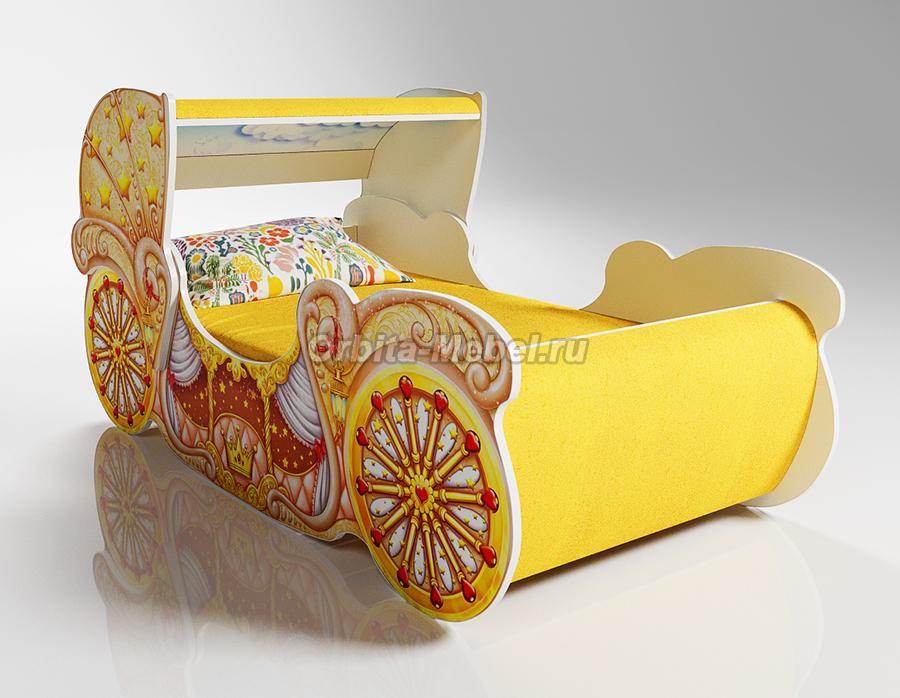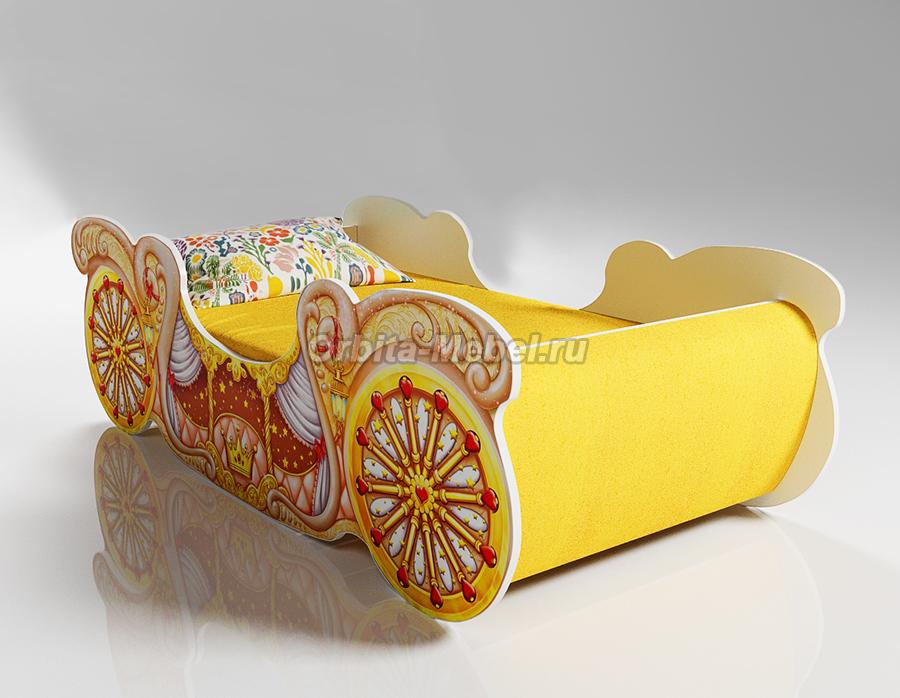 Низкая кровать карета мини для девочек арт. 20014 с мягкими накладками в желтой цвете