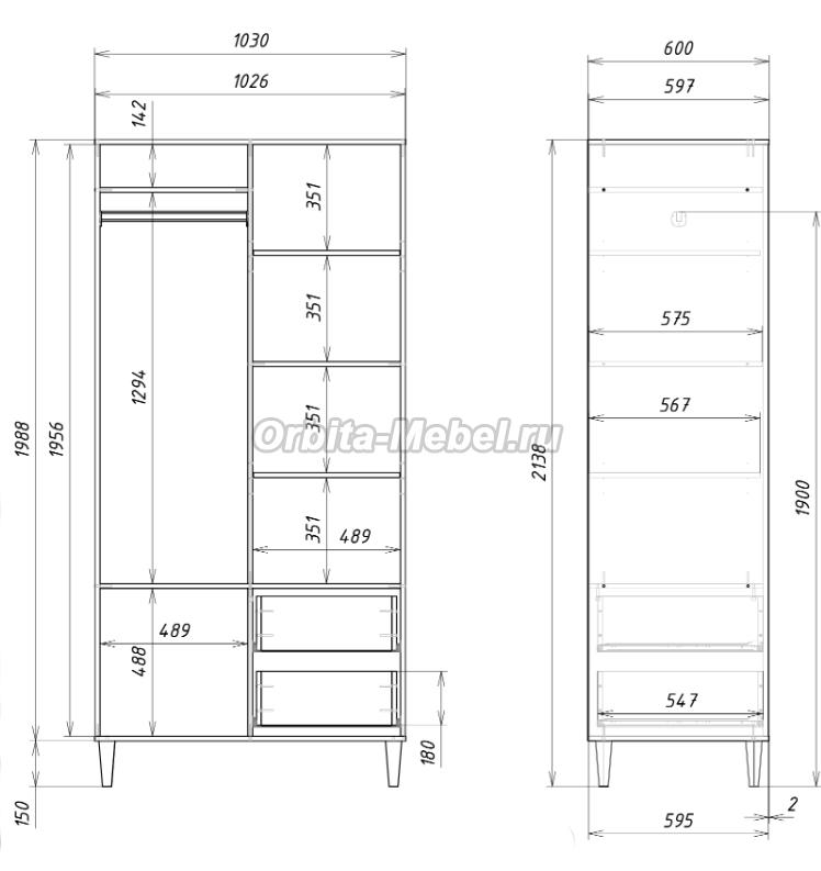Схема с размерами шкафа Квадро КД-02