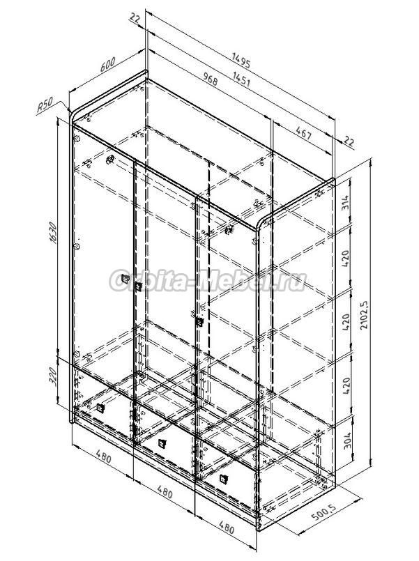 Трехдверный шкаф Дельта Сильвер , размеры