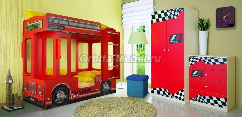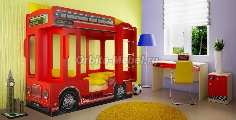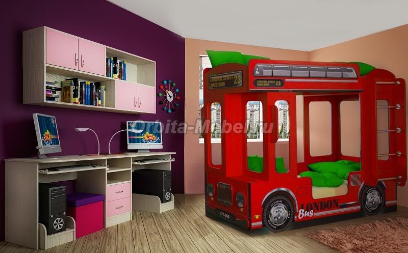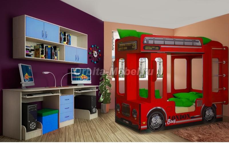 Детская комната с Автотематикой Ковать Автобус Лондон и мебель Фанки Авто