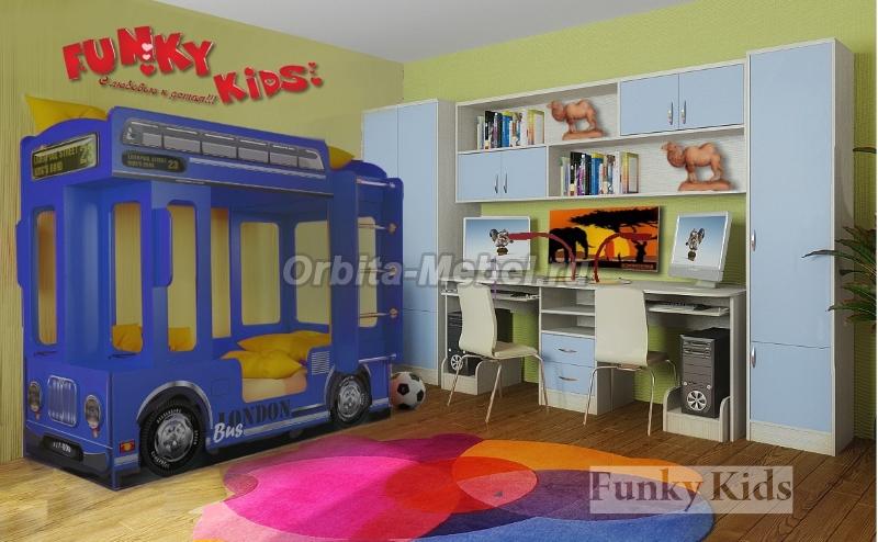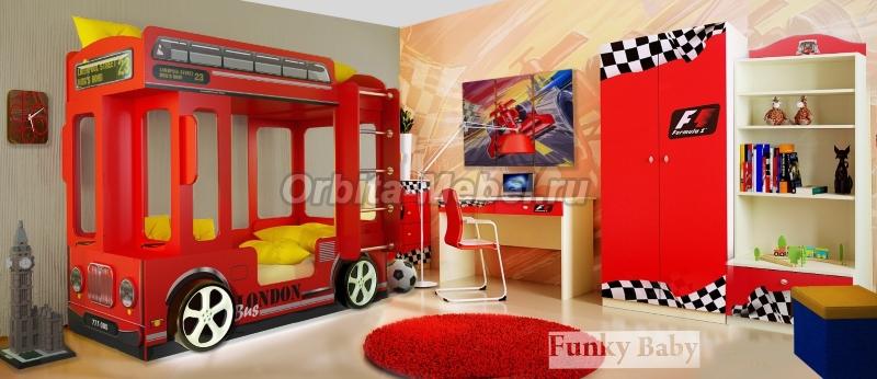 Кровать для мальчиков Автобус Лондон с Мебелью Фанки Кидз
