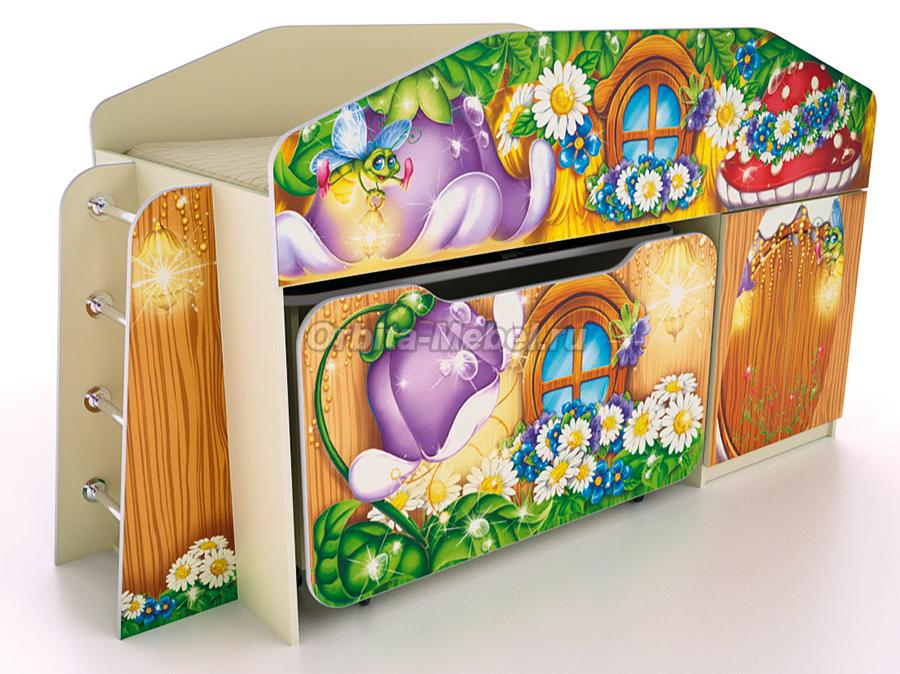 Детская кровать-чердак КЧ-8 и ящик на колесиках ЯЩ-8 Лесная сказка