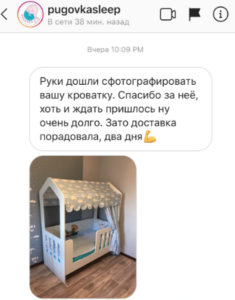 Вот не знаю будет ли опубликован отзыв. На сайте срок изготовления указан 7-10 дней, по факту 35-40. О готовности заказа не сообщают, звони сам и уточняй. Более того, потом ещё доставлять планируют дня через 4 после готовности. И это из Москвы в МО. Сомннвпюьсь, что у магазина много заказов, сервис и уровень обслуживания на нуле! Жалею, что потратила на эту контору время. Заказала аналогичную кровать вообше в Санкт Петербурге. Не тратьте время на этот магазин, есть немало других, но с более высокой клиентоориентированностью!